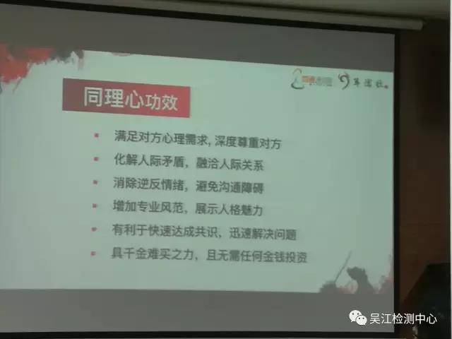溝通,是一種能力,并不是一種本能。它不是與生俱來,而是需要后天培養(yǎng)的,需要我們?nèi)ハ到y(tǒng)學(xué)習(xí)、努力經(jīng)營。隨著溝通時代的來臨,學(xué)習(xí)溝通技巧,能讓每一位干部都更具有影響力。如何有效提高內(nèi)部、外部溝通的表達(dá)能力,本單位組織了全體中、高層干部參與了吳思通老師的《有效溝通》專題講座。