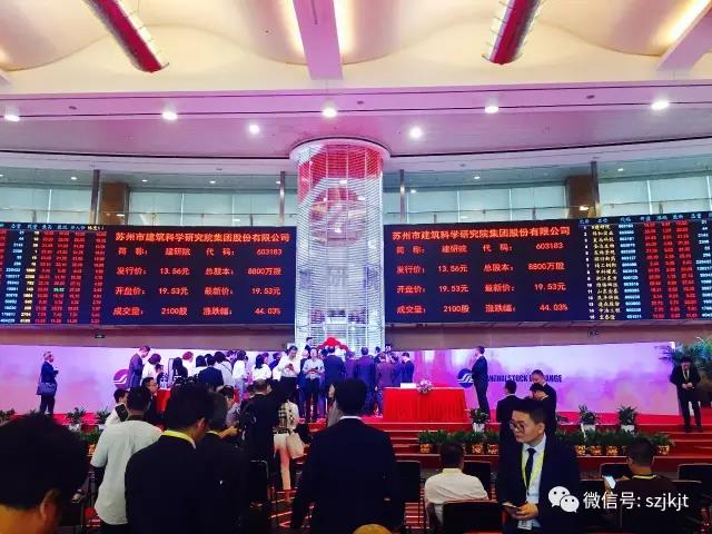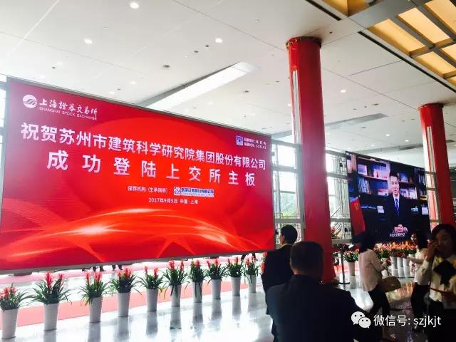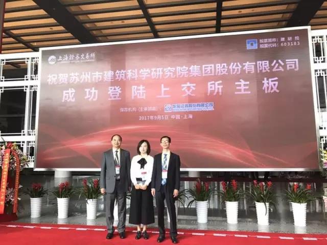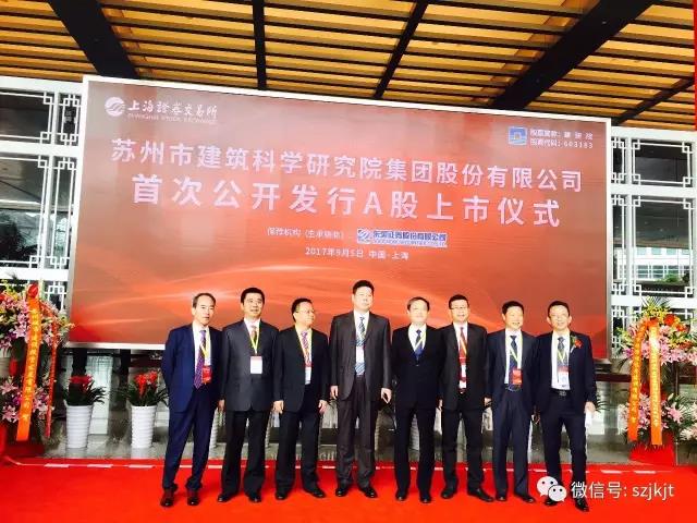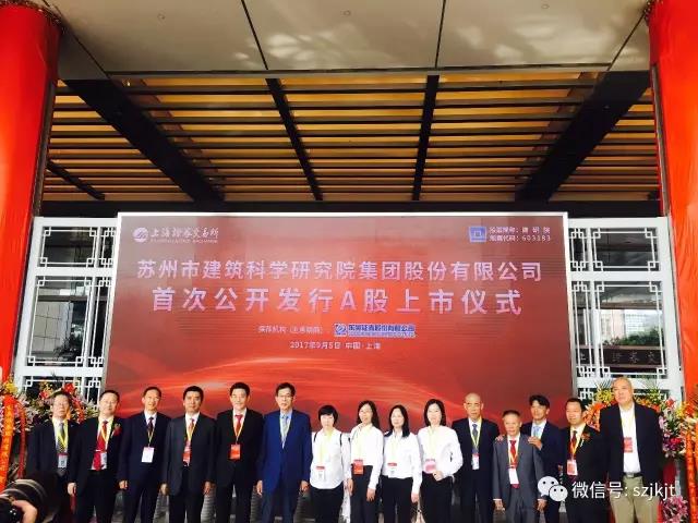 2017年9月5日上午,吳江市建設(shè)工程質(zhì)量檢測中心有限公司母公司——蘇州市建筑科學(xué)研究院集團(tuán)股份有限公司首發(fā)上市儀式于上海證券交易所舉行,宣告蘇州市建筑科學(xué)研究院集團(tuán)股份有限公司正式上市;這是蘇州建研院集團(tuán)一個值得記載的歷史時刻,這也是一個新起點(diǎn),蘇州建研院集團(tuán)風(fēng)帆高揚(yáng)、破冰踏浪,開啟登陸資本市場的新征程。